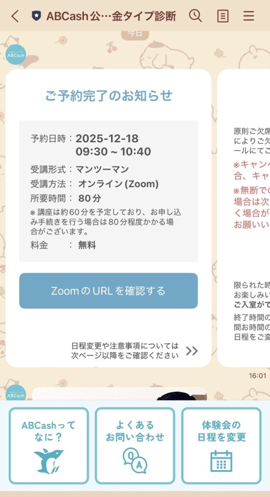 受講当日は「ZoomのURLを確認する」をタップしてスタートしてね!